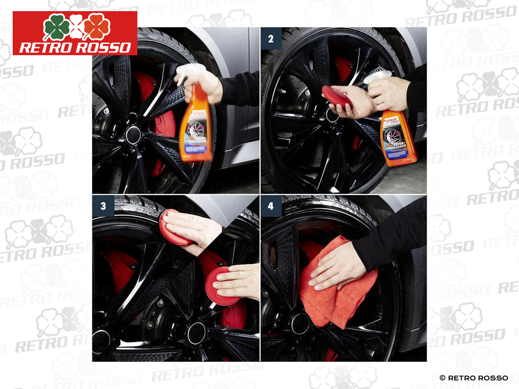 Pénètre en profondeur dans la surface traitée et laisse un film protecteur sans taches ainsi quun effet déperlant impressionnant. Convient à tous les types de pneus et de jantes. Les pneus et le caoutchouc retrouvent leur aspect mat et neuf. Protège contre la saleté, le vieillissement prématuré, les fissures ainsi que les agressions climatiques et environnementales. Une utilisation régulière permet de supprimer le brunissement du caoutchouc. Les jantes sont nettoyées en douceur des salissures superficielles sans être rayées. Confère une surface extrêmement lisse et une brillance intense. Le nettoyage ultérieur est nettement facilité.