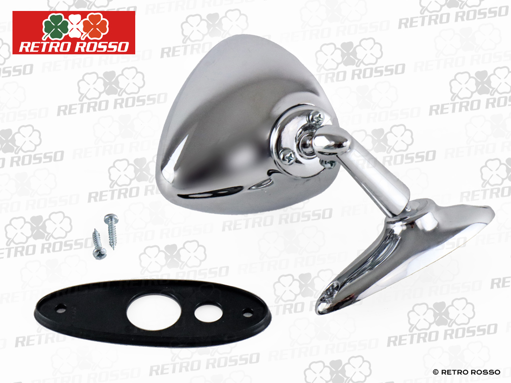 Rétroviseur chromé universel au look vintage en version goutte deau. Montage par vis avec entraxe de 85 mm, idéal pour les véhicules anciens.